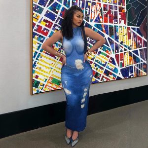 New Summer Sleeveless V-Neck Solid-Color Womens Dress