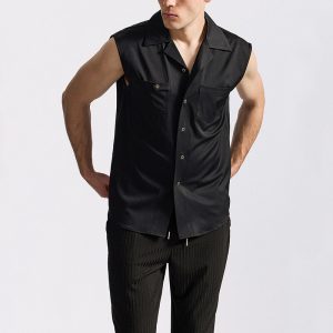 Men’s Sleeveless Lapel Shirt European Fashion Brand