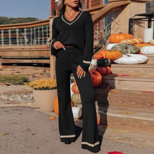 New European And American Autumn And Winter Leisure Contrast Color Two-piece Set For Women