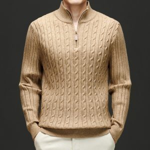 Men’s Woolen Half Zipper Thick Casual Long-sleeved Sweater