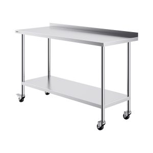 Stainless Steel Work Table, 24 X 28 X 30 Inch Commercial Food Prep Worktable With 4 Wheels, Casters, 3-Sided Backsplash Heavy Duty Prep Worktable, Metal Work Table For Restaurant Home Hotel