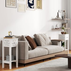 HOMCOM Set Of Two Elegant Floral Cut-Out Side Tables – White