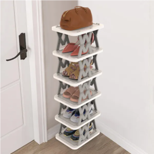 6 Tier Foldable Shoe Rack Vertical Shoe Organizer Narrow Shoe Rack For Small Spaces Space Saving Free Standing For Corner Entryway Hallway Bedroom