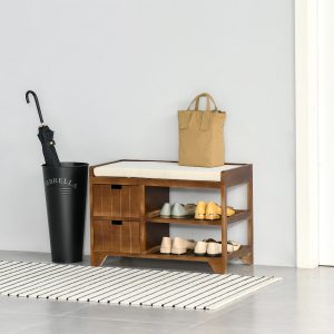 Compact Rustic Padded Shoe Rack Bench Organizer With Drawers Coffee Woodgrain