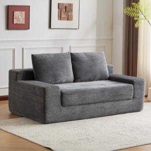 Loveseat Sofa, Comfortable Deep Seat Sofa Bed, Modern Small Corduroy Couch For Living Room Bedroom,Reversible Cushion With Pillows,No Assembly Required,Dark-grey