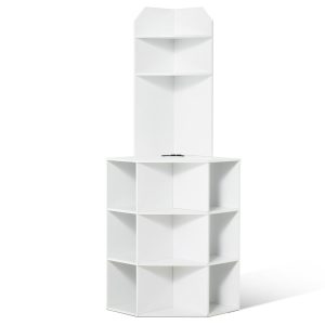 64″ Tall Corner Storage Cabinet, 6 Tiers Wooden Storage Cabinet With USB Ports And Outlets & Adjustable Shelves, Freestanding Corner Cabinet For Living Room, Kitchen, Laundry Room, White