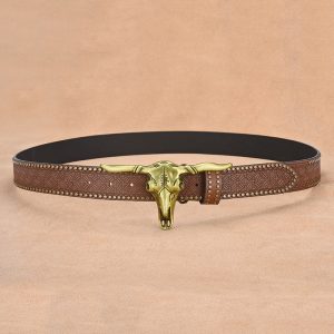Men’s Belt Genuine Leather Top Grain Pure Cowhide Retro Brass Buckle
