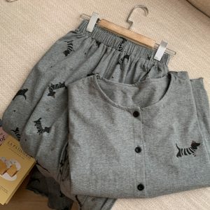 Stripe Buttoned Front Long Sleeve Top And Pants 2 Piece Sleepwear