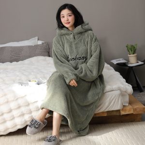 RONGTAI Plush Fleece Bathrobe For Women, Long Robe With Two Side Pockets And Belt, Warm And Cozy Fluffy Sleepwear Nightgown –Fleece White, M
