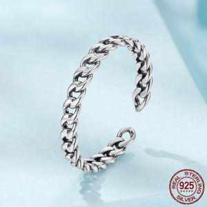 S925 Sterling Silver Cuban Link Chain Open Ring