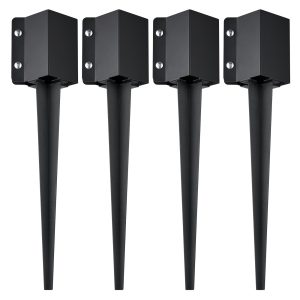 Fence Post Anchor Ground Spike, 4 Pack 24 X 4 X 4 Inches Outer Diameter (Inner Diameter 3.5 X3.5 Inches), Metal Black Powder Coated Post Stake Ground, For Mailbox Deck Garden Railing