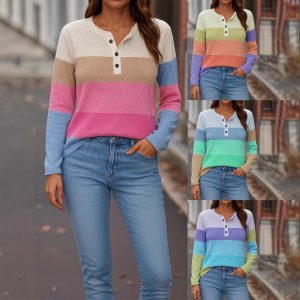 Casual V-neck Long Sleeve Loose Pullover Digital Printing