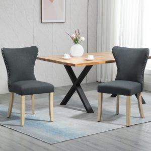 AA Furniture,Ultra Side Dining Chair Thickened Fabric Chairs With Neutrally Toned Solid Wood Legs Bronze Nail Head Set Of 2 Gray