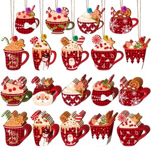 50 Pieces Christmas Wooden Ornaments Hot Cocoa Blanks Pendants Unfinished Predrilled Wood Coffee Mug Slices Hanging For Xmas Festivals DIY Crafts Decoration, 10 Styles