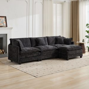 Wider Armrest 3 Seats Ottoman Is Not Included, Modern Sectional Couch, For Living Room Bedroom And Apartment, Comfy Double Layer Upholstered Seat Cushion, Breathable Chenille Fabric,Black,SW5044BK