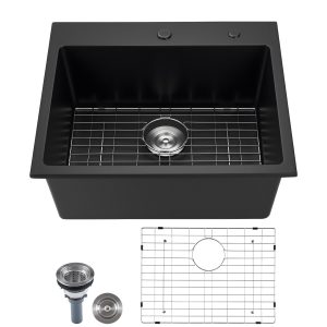 25 Inch Granite Kitchen Sink Top Mount Single Bowl Drop-In Basin For RV Bar