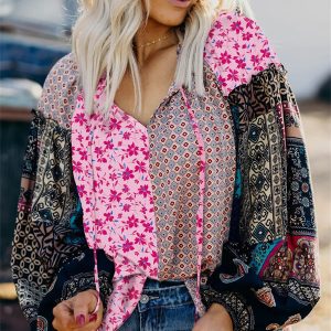 Boho Mixed Floral Drop Shoulder Bubble Sleeve Blouse
