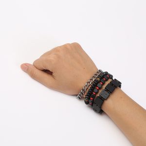 Retro Woven Alloy Men’s Beaded Bracelet