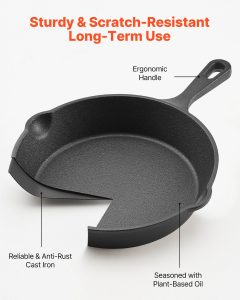 3 Piece Cast Iron Skillet Frying Pan Set 6 8 10 In Handle Pre-Seasoned Black