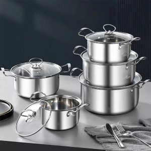 BIG 5PCS STAINLESS STEEL COOKWARE HOB STOCKPOT POT CASSEROLE SET WITH GLASS LIDS