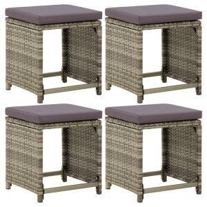 Garden Stools with Cushions, 4 Pieces, Brown, 40x40x35 cm, Poly Rattan