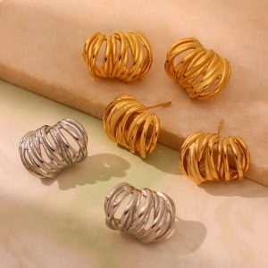 Heavy Industry Casting C- Type Ear Studs Multi-layer Lines