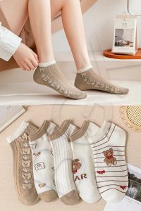 5 Pair Patterned Women Short Socks Soft Comfortable Daily Use