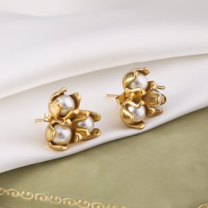 Stainless Steel Earrings Temperament Colorfast Plating 18K Dold Pearl