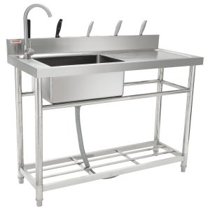 Stainless Steel Utility Sink, 1 Compartment Free Standing Small Sink W/Workbench Faucet & Legs, 39.4 X 19.1 X 37.4 In Commercial Single Bowl Sinks For Garage, Restaurant, Laundry