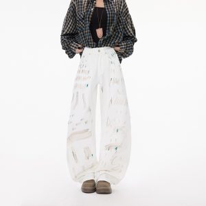 Women’s New Fringed Pure White Jeans, Blended Fabric, Slim Fit Fringed Design, Beveled Pocket, Suitable For Outdoor Work, Can Be Worn All Year Round