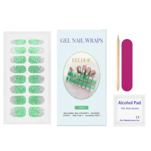 EELHOE Soft Gel Nail Sticker Set (Shiny Green) Semi-Baked Nail Paper, Fresh And Shiny Minimalist Style Soft Nail Stickers