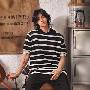 Men’s Short-sleeved Loose Versatile Casual Lapel Stripe Top