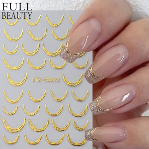 Nail Stickers Ins French Bronzing Lines Metal Scrubs