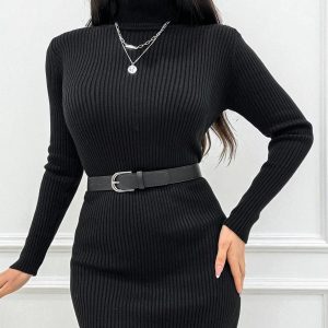 Metal Decorative Sling Woolen Skirt Slimming Hip Knitwear Dress