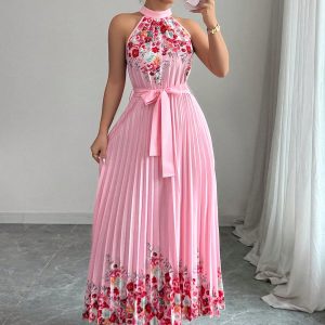 Suspended Backless High Waisted Sequin Patchwork High Slit Long Skirt Dresses Graduation Summer Dress Maxi Women Outfit