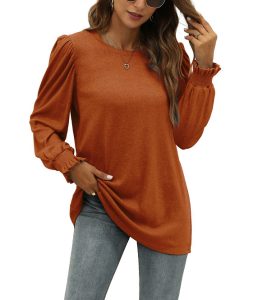 Round Neck Puff Sleeve Long Women’s Clothing Top