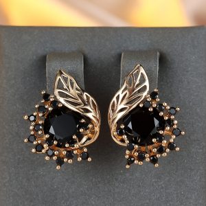 Round Flowers Feather Zircon Earrings Female Personality Fashion High Sense