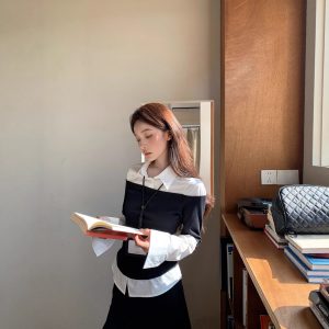 Women’s Autumn Korean Slimming Fake Two-Piece Shirt