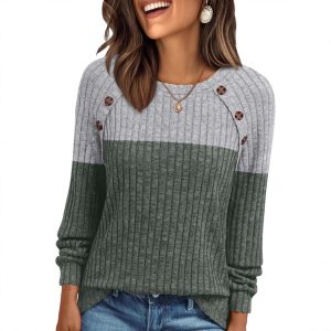 Women’s Round-neck Sunken Stripe Brushed Solid Color Top Long Sleeve