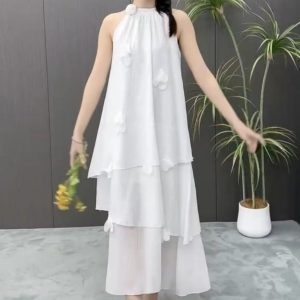 French Style Halter Dress Women’s Elegant Three-dimensional Pansy Sleeveless