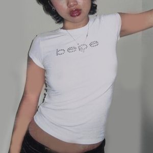 Letter Rhinestone Slim Fit Midriff-baring Top