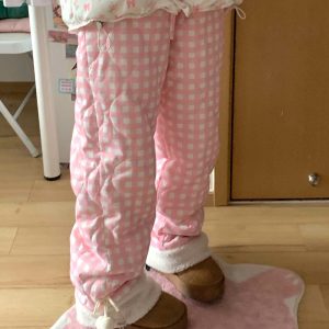 Korean Style Floral Insulation With Thick Fleece And Cotton Pants For Women