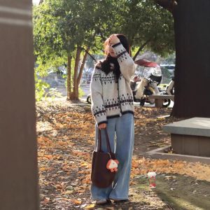 Leopard Print Thick Warm Coat Loose Lazy Knitted Cardigan Sweater
