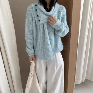 Craft Design Button Warm Turtleneck Comfortable Sweater For Women MLZY84274