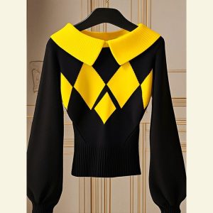 European Goods Western Style Unique Chic Niche Idle Style Black Diamond Plaid Sweater