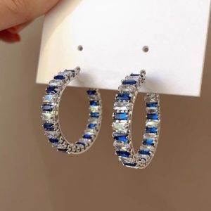 Large Hoop Earrings Female Quadrangle Geometric Zircon Ornament