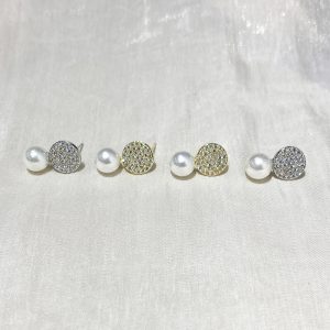 Elegant And Versatile Round Diamond Studded Pearl Earrings