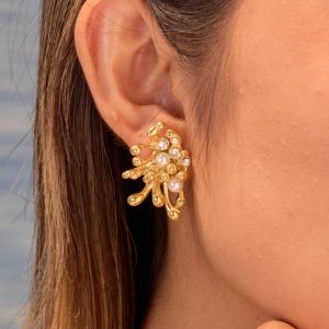 Fireworks Set With Pearls And Stainless Steel Earrings Plated With 18K