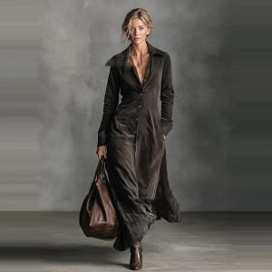 Women’s Elegant Solid Cross V-Neck Midi Dress With Flared Skirt And Pockets Spring Summer Formal Dress