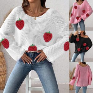 Women’s Simple Loose Off Shoulder Off-the-shoulder Flared Sleeves Sweater